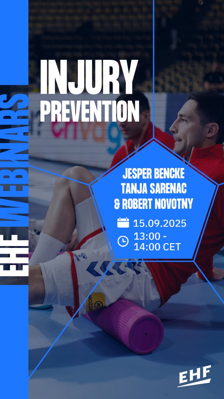 Bolje je spriječiti ozljede nego se oporaviti od njih. Želite saznati više? Pridružite nam se na sljedećem webinaru: Prevencija ozljeda u rukometu: znanost, praksa i individualizirani pristupi / 23. listopada 2025. / 13:00–14:00 CET
